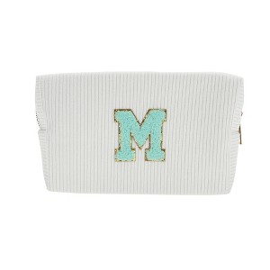 Unique Bargains Portable Corduroy Rectangular Letter Makeup Bag White 1 Pc