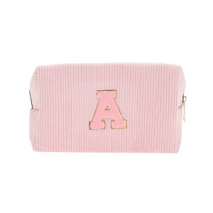 Unique Bargains Corduroy Rectangular Letter Makeup Bag Pink 1 Pc