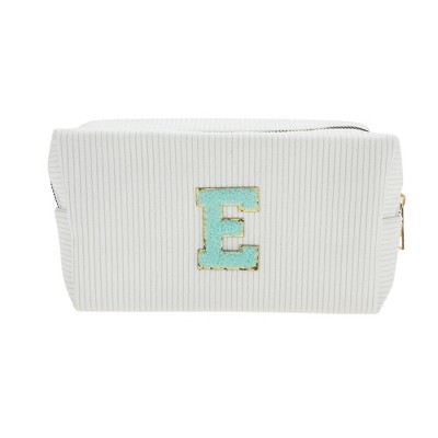 Unique Bargains Portable Corduroy Rectangular Letter Makeup Bag White 1 Pc