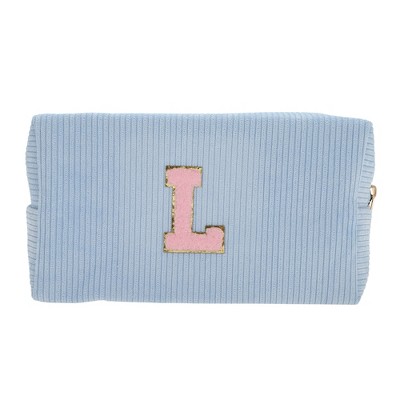 Unique Bargains Corduroy Rectangular Letter Makeup Bag Sky Blue 1 Pc