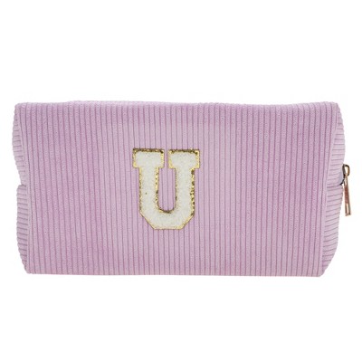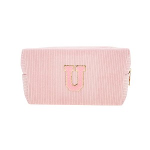 Unique Bargains Corduroy Rectangular Letter Makeup Bag Pink 1 Pc