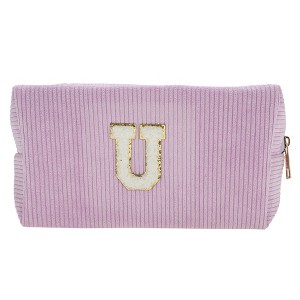 Unique Bargains Corduroy Rectangular Letter Makeup Bag Pink Purple 1 Pc