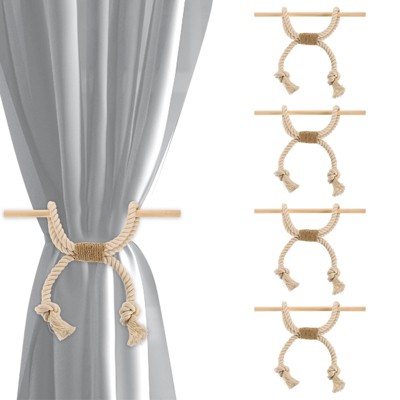 The curtain tiebacks have a beautiful appearance and are suitable for farmhouse curtains, tulle curtains, gauze curtains, woven curtains, and other light and medium-weight curtains in living rooms, bedrooms, dining rooms, bathrooms, offices, restaurants, hotels, apartments, or studios. Simply tie the rope curtain ties onto the curtains to secure them without any tools required. The wooden sticks help stabilize the straps to prevent slipping, and there's no need to drill holes in the wall. It is recommended to keep the binding rope in a dry environment to prevent deformation and to hand it if cleaning is required. The curtain tiebacks are made of strong, durable cotton material, which is moisture-absorbent and breathable, with a non-slip surface and comfortable feel, making them applicable to various curtain styles.