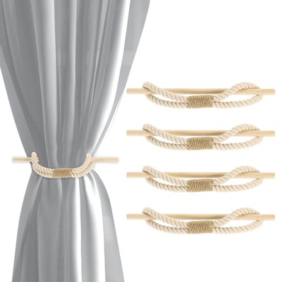 The curtain tiebacks have a beautiful appearance and are suitable for farmhouse curtains, tulle curtains, gauze curtains, woven curtains, and other light and medium-weight curtains in living rooms, bedrooms, dining rooms, bathrooms, offices, restaurants, hotels, apartments, or studios. Simply tie the rope curtain ties onto the curtains to secure them without any tools required. The wooden sticks help stabilize the straps to prevent slipping, and there's no need to drill holes in the wall. It is recommended to keep the binding rope in a dry environment to prevent deformation and to hand it if cleaning is required. The curtain tiebacks are made of strong, durable cotton material, which is moisture-absorbent and breathable, with a non-slip surface and comfortable feel, making them applicable to various curtain styles.