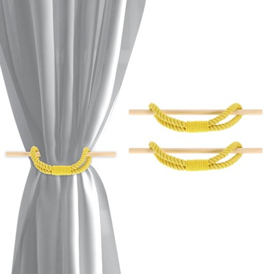 Unique Bargains Cotton Hand-Woven Decorative Tassel Curtain Tiebacks with Wood Club Yellow 2 Pcs