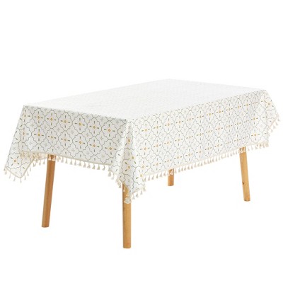 Unique Bargains Cotton Linen Flower Dining Room Gathering Rectangle Tablecloth 1 Pc