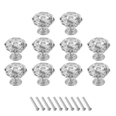 Unique Bargains Crystal Cabinet Knobs with Screw for Cupboard Wardrobe 10 Pcs