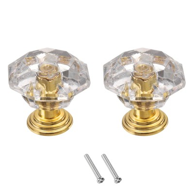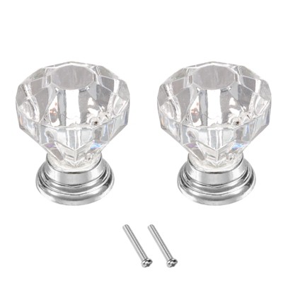 Unique Bargains Crystal Cabinet Knobs with Screw for Cupboard Wardrobe 2 Pcs