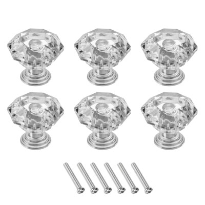 Unique Bargains Crystal Cabinet Knobs with Screw for Cupboard Wardrobe 6 Pcs