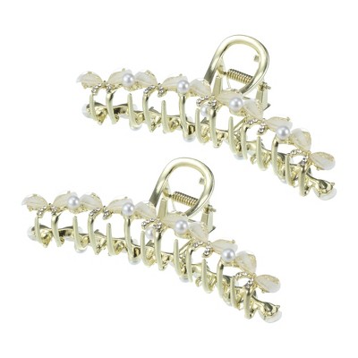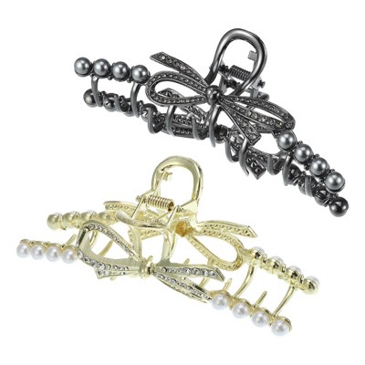 Unique Bargains Cute Faux Pearl Bow Hair Clips and Pins 2 Pcs