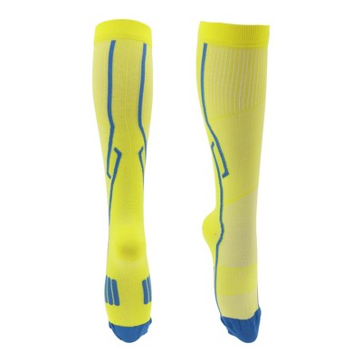 Unique Bargains Cycling Athletic Socks Breathable Shaping Sweat-Absorbent Outdoor Color Block Stripes 1 Pair Dark Blue, Black Size L