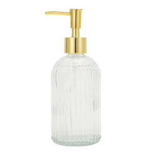 Unique Bargains Cylinder Vertical Stripes Soap Dispenser 12.17oz Clear Gold Tone 1 Pc