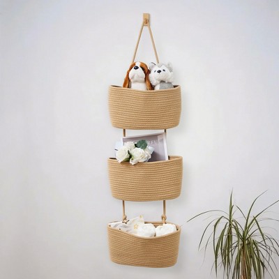 Unique Bargains Decorative Cotton Rope Handcrafted Portable Storage Basket 3 Pcs