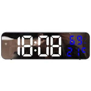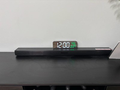 [This review was collected as part of a promotion.] The digital clock is large, bright and easy to read. Setup was easy with the included instructions but would be difficult without them. The temperature reading is handy but seems to vary +\- 5 degrees from what my thermostat reads. Although the clock comes with a usb cord there is no way to plug it into a wall outlet.