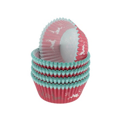 Unique Bargains Disposable Baking Cups Greaseproof Paper Red Blue 3.15"x3.15"x1.18" 100 Pcs
