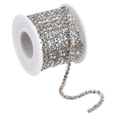 Crafted from rhinestone and metal, this piece is finely crafted for durability and features an electroplated finish that resists rust and oxidation. Its dense prongs on the bottom and imitation diamonds on the top prevent it from falling off. Its bright luster and vibrant colors add a touch of fashionable charm. Easy to use, this sewing crystal rhinestone diamond chain charm can be easily cut to any length, then glued or sewn to complete your handmade decoration. It's versatile and can be used on clothing, shoes, handbags, wine bottles, phone cases, hairpins, photo frames, bouquets, wedding dresses, and various holiday decorations.