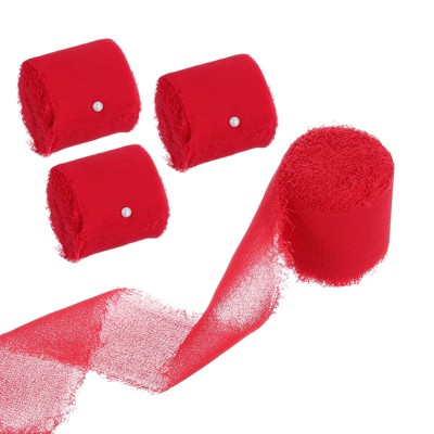 Unique Bargains DIY Crafts Party Gift Wrapping Fringe Chiffon Silk Ribbon 4 Rolls