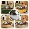 Features: The stainless steel slow feeding balls are designed to fit all dog breeds, preventing swallowing and ensuring they stay in the bowl for your dog's safety. Crafted with thicker material, they resist being pushed out by eager eaters, enhancing mealtime safety. Made from 304 stainless steel, slow feeding balls offer unmatched reliability. Rust-resistant, they are chew-proof, enduring even aggressive chewers to serve your pet for years without harm. Say goodbye to choking and bloating risks with steel slow feeding balls. Tailored for fast-eating dogs, these balls naturally slow down eating speed, aiding in healthier digestion, promoting a better lifestyle for your pet. Easy to use, simply place slow feeding balls in your dog's food bowl with their meal. Watch as feeding transforms into a longer, more enjoyable process for your pet, encouraging savoring rather than rushed consumption. Designed for convenience, these balls feature a smooth spherical shape for easy cleaning. A quick wipe with a paper towel or rinse underwater restores them to pristine condition, ready for the next use. Effortless maintenance means more quality time with your pet. Specifications: Color: Silver Tone, Material: 304 Stainless Steel, Package List: 1 Pc Dog Slow Feeders.