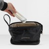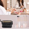 - The top zipper closure provides a wide opening for easy retrieval of cosmetics