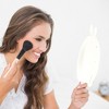 - This desktop mirror with handle is ideal for applying makeup, lashes, brow shaping, shaving and other personal grooming needs