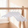 - Set of 4 hangers for coats, shirts, dresses, and pants, which makes a stylish and functional addition to your closet