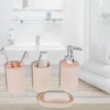 Item Function: 1. The plastic product makes these suits less prone to breakage and can last longer. And each one can be adapted to your home, giving you more storage space. 2. Item includes 1 x soap dispenser, 1 x toothbrush holder, 1 x mouthwash cup and 1 x soap dish. It has most of the things you need for a bathroom. 3. People can use these items together on your bathroom counter, or your restroom, or you can use individual pieces, such as a dispenser for lotion, soap, and more. It is also a stylish decoration full of vitality for your monotonous ordinary bathroom, easy to match with different styles. 4. Functional and beautiful design make these bathroom accessories a great gift for housewarming, wedding, birthday, Mother's Day, Thanksgiving Day, and also for mom, sister, colleague, and friends. Specifications: Product Name: Bathroom Accessories Set; Material: Plastic; Soap Dispenser Size: 18.5x7.5cm / 7.28"x2.95"(H*D); Toothbrush Holder Size: 11.5x7.5cm / 4.53"x2.95"(H*D); Mouthwash Cup Size: 11x7.5cm / 4.33"x2.95"(H*D); Soap Dish Size: 13x8x2.3cm / 5.12"x3.15"x0.91"(L*W*H); Package List: 1 Set Bathroom Accessories Kit.