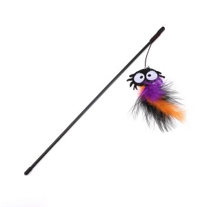 Unique Bargains Halloween Durable Araneid Pattern Cat Playing Rod Orange Purple 1 Pc