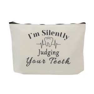 Unique Bargains Durable Tooth Pattern Makeup Bag Beige 1 Pc