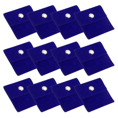 Unique Bargains Earrings Necklaces Rings Velvet Pouches Snap Button Portable Jewelry Storage Bag 4 Pcs Blue 3x3 Inch