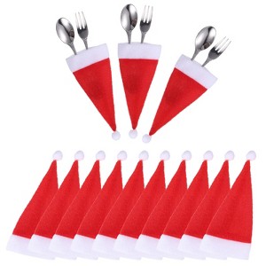 Unique Bargains Fabric Christmas Santa Hats Knife Forks Sleeve Flatware Storage Holders Red