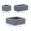 - The organization bin measures 11" x 11" x 4.8", 11" x 5.7" x 4.8", 5.7" x 5.7" x 4.8"