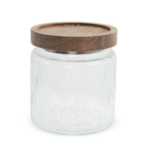 Unique Bargains Fan Shape Pattern Decorative Glass Jar with Lid 1 Pc