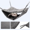Item Function: 1. The double-layer bed design of this ferret hammock allows pets to engage in playful activities or rest on the top level, providing both entertainment and relaxation spaces for your furry companion. 2. This ferret cage accessory includes 4 metal hooks that are simple to install and can be hung on any wire cage, expanding your pet's living area and adding versatility to their environment. 3. Crafted from durable flannel material, this ferret bed is machine washable and can be tumble-dried for easy cleaning. The product information highlights its ability to be washed gently in a lingerie bag for convenience. 4. Measuring 12.2 inches long, 11.81 inches wide, and 5.91 inches high, this rat hammock is suitable for ferrets, guinea pigs, chinchillas, and other small furry pets to enjoy comfortably. Specifications:Color: Gray; Material: Flannel; Rope Length(including hook): 16cm / 6.3"; Size: 31x30x15cm / 12.2"x11.81"x5.91"(L*W*H); Package List: 1 Pc Ferret Hammock.