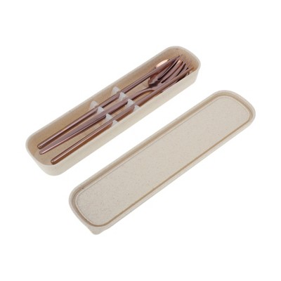 Unique Bargains Flatware Sets Dishwasher Safe Cutlery Set Knife Fork Spoon 3-Piece Set 410 Stainless Steel Rose Gold Tone 8.66"x1.57"x1.57" 1 Set