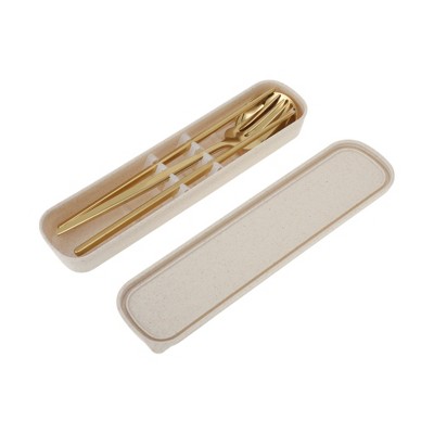 Unique Bargains Flatware Sets Dishwasher Safe Waist-Designed Spoon Chopsticks 2-Piece Set with Box Stainless Steel Gold Tone 9.33"x2.36"x2.36" 1 Set