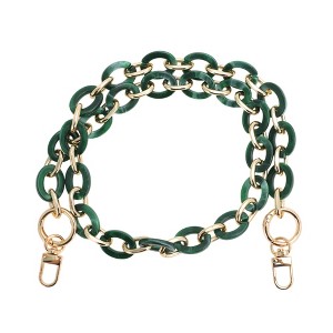 Item Function:Replacement straps for handbags nice Crossbody purse strap made from metal buckles. No need to worry about being scratched or snags.Classic replacement straps or handles for DIY bag, purse, handbags, clutches, cross body bags etc. Upgrade the look and style of a bag.The handbag strap is awesome and durable, Great adornment to brighten up a plain purse. The length is good for a shoulder or crossbody and feels comfortable to wear, It is very easy to adjust the length.This chain strap looks very good! looks super chic, The adjustability is wonderful and the materials feel well made. if you're looking to dress up any bag this is a great option.Specifications:Product Name: Handbag Strap, Material: Acrylic, Metal, Color: Deep Green, White, Package List: 1 Pc Handbag Strap.