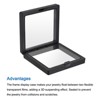 The frame display case makes your jewelry float between two flexible transparent films, adding a 3D suspending effect. Due to the clasp frame design, push and open the jewelry storage box, place objects between the clear film, adjust the position, and close the box. All size is measured manually, please allow +/-0.1 inches error.