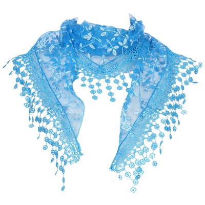 Unique Bargains Floral French Lace Triangle Bandana Blue 1 Pc