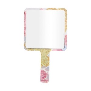 Unique Bargains Floral Square Handheld Mirror Pink Yellow 1 Pc