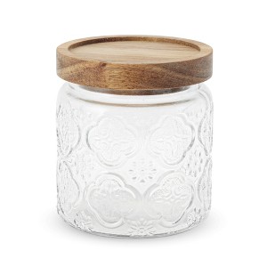 Unique Bargains Flower Pattern Decorative Glass Jar with Lid 1 Pc