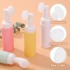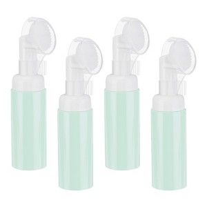 The set includes 4 empty foaming soap dispensers with brush heads. These soap pump containers have a 2oz capacity, making them suitable for travel or outings. Made of PET and silicone, the face foam bottle is durable, refillable, and reusable. Simply fill the bottle with your favorite facial cleanser or foaming soap, add water if necessary, and attach the brush head. Gently massage the foaming cleanser onto damp skin in circular motions for a thorough cleanse. The empty foam face wash bottle can be used at home, in the kitchen, bathroom, office, or on trips. Suitable for cleaning supplies and facial cleansers. When using the brush head attachment, be gentle to avoid scrubbing too vigorously to prevent irritation or damage to the skin. Keep the foaming bottles clean and dry.