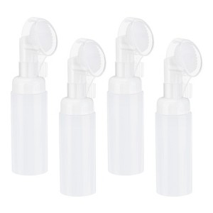 The set includes 4 empty foaming soap dispensers with brush heads. These soap pump containers have a 2oz capacity, making them suitable for travel or outings. Made of PET and silicone, the face foam bottle is durable, refillable, and reusable. Simply fill the bottle with your favorite facial cleanser or foaming soap, add water if necessary, and attach the brush head. Gently massage the foaming cleanser onto damp skin in circular motions for a thorough cleanse. The empty foam face wash bottle can be used at home, in the kitchen, bathroom, office, or on trips. Suitable for cleaning supplies and facial cleansers. When using the brush head attachment, be gentle to avoid scrubbing too vigorously to prevent irritation or damage to the skin. Keep the foaming bottles clean and dry.