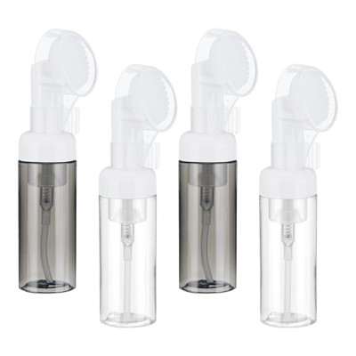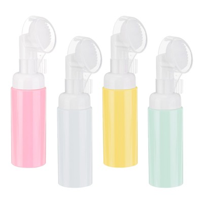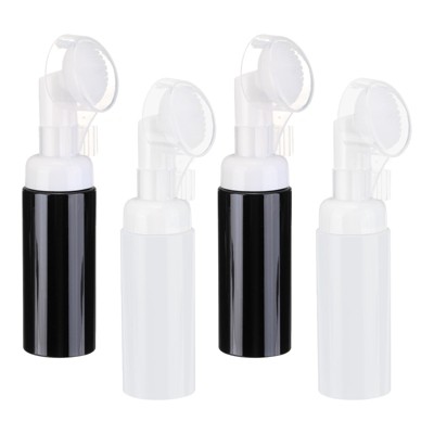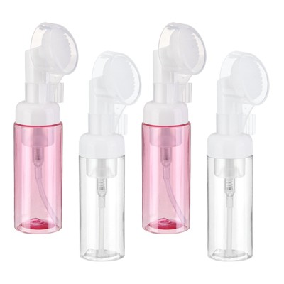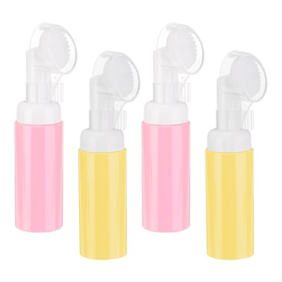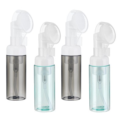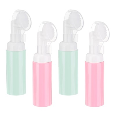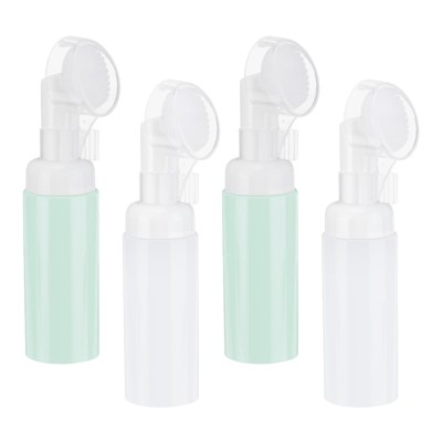 The set includes 4 empty foaming soap dispensers with brush heads. These soap pump containers have a 2oz capacity, making them suitable for travel or outings. Made of PET and silicone, the face foam bottle is durable, refillable, and reusable. Simply fill the bottle with your favorite facial cleanser or foaming soap, add water if necessary, and attach the brush head. Gently massage the foaming cleanser onto damp skin in circular motions for a thorough cleanse. The empty foam face wash bottle can be used at home, in the kitchen, bathroom, office, or on trips. Suitable for cleaning supplies and facial cleansers. When using the brush head attachment, be gentle to avoid scrubbing too vigorously to prevent irritation or damage to the skin. Keep the foaming bottles clean and dry.