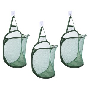 Unique Bargains Foldable Nylon Mesh Design Breathable Laundry Hamper with Hooks 3 Pcs
