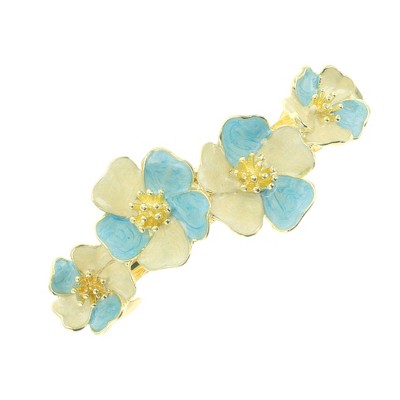 Unique Bargains Freesia Flower French Barrette Hair Clips Dark Blue White 1 Pc