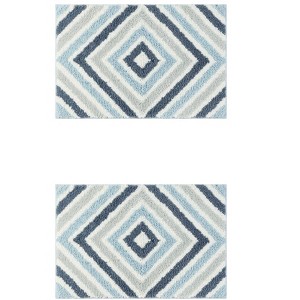 Unique Bargains Geometric Pattern Quick Dry Non-Slip Bathroom Mats 2 Pcs