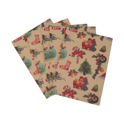 Unique Bargains Gift Wrap Paper Christmas Yellow Kraft 27.56"x19.69" 5 Pcs - 1 of 4