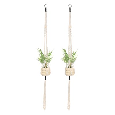 Unique Bargains Handmade Cotton Rope Hanging Basket Holder 69 Inch Apricot 2-Pack