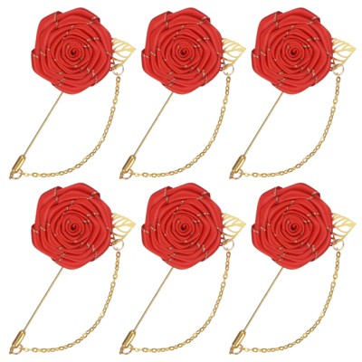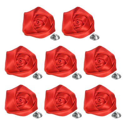 Unique Bargains Handmade Flower Brooch Boutonnieres Lapel Pin with Butterfly Buckle for Men Suits 12 Pcs Red