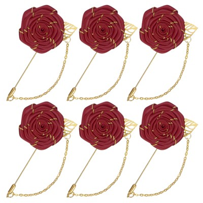 Unique Bargains Handmade Men Suits Formal Boutonnieres Wedding Corsage Lapel Pin Flower Brooch Butterfly Buckle 8 Pcs Wine Red